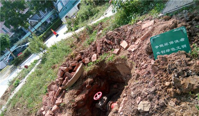 片剛剛被開挖的花壇,綠色標(biāo)語頗為諷刺