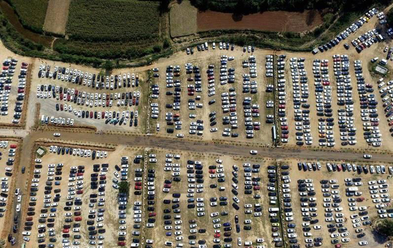 停車管理:少林寺“十一”期間停車場近萬輛汽車如電路板
